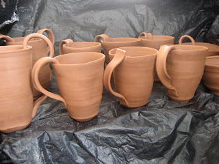 Newly wheel-thrown mugs for an exhibition happening at our studio at the end of this month