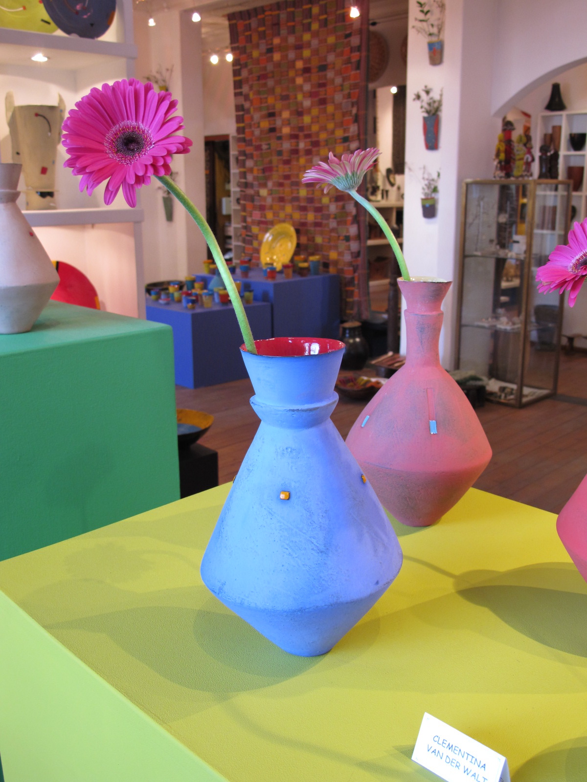 The opening of the exhibition was wonderful, lots of people, lots of interest AND lots of sales. The walkabout turned into a poignant discussion on the role of hand crafts and studio ceramics in the 21st Century. All in all, a great day…now back in cloudy and somewhat chilly Cape Town..and on to the next project!