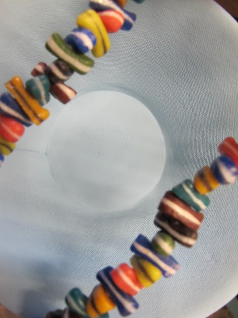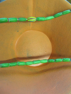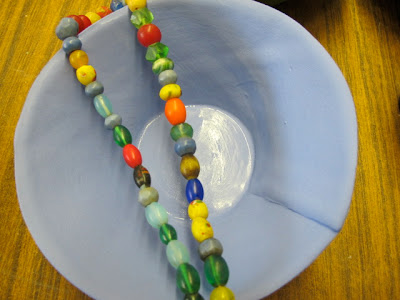 My studio colleague Peta (of Projekt) brought these magnificent old African beads to the studio. They looked so appropriate against these freshly painted (not yet fired) bowls…