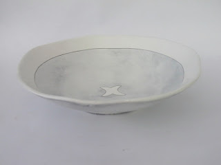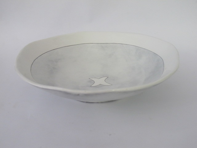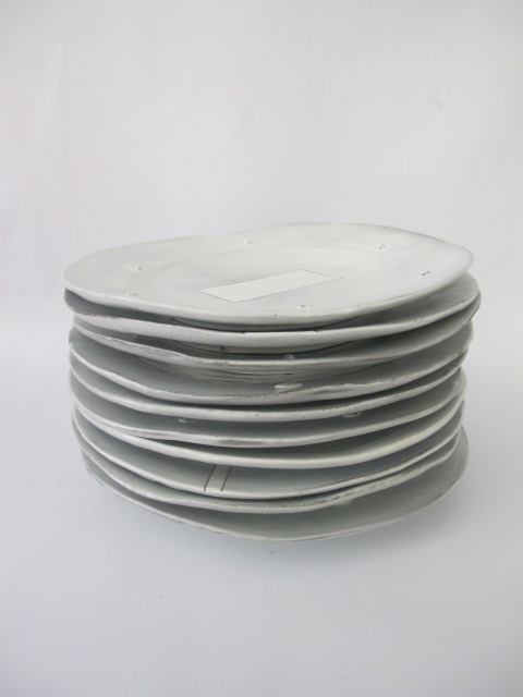 I am usually drawn to using bright colours, but a quiet side of me – an antidote – comes up every now and then, and increasingly more often these days. The above items are part of a bespoke dinner service for a client. I call this my ‘white-on’white’ ware, in fact it is white matte texture combined with white shiny glaze all covering a charcoal clay which gives the white some depth. All packed up and shipped off today!