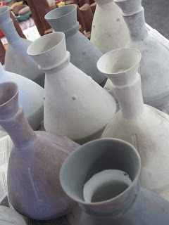 ‘Zig zag’ vases with new palette – I am really into these muted colours right now – surfaces done, and about to go into the kiln for the final glaze firing. All going to be on display at Kim Sacks Gallery in Johannesburg
